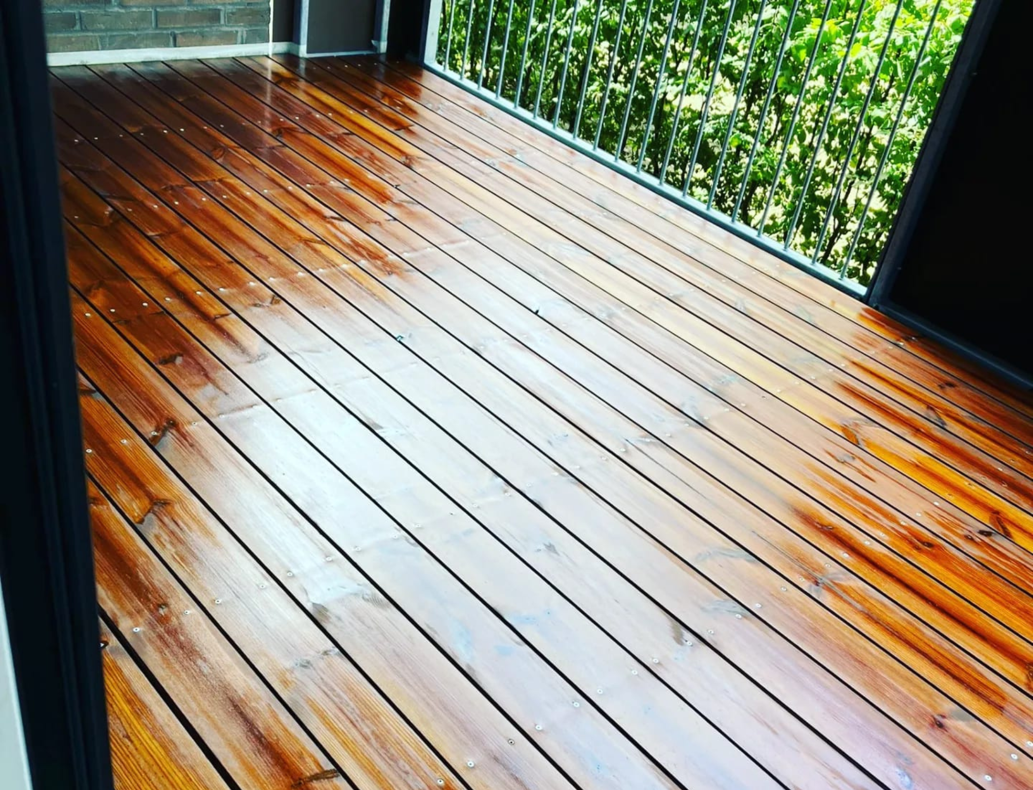 Vi afhøvlede først terrassen for at give den vand så porrene løftede sig. Derefter lagde vi 2 gange Olie behandling for at sikre et langtids holdbar resultat. Opgaven tog cirka 2 dage og 24 timer efter sidste behandling var lagt kunne kunden bruge terrassen igen